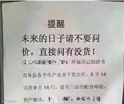 去年至今全国性的环保检查以来直接影响了化工行业,之前工厂虽然小幅调价,但远低于原材料和人工费的上涨幅度。