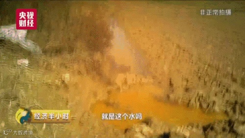 2017年12月当地村民拍摄到的一段视频显示,河道水面上一条深褐色的污水带清晰可见,夹杂着一层白色泡沫的河水,径直向下游流去。