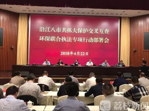 据江苏新闻网讯:4月22日下午,省环保厅召开专项行动部署会。会上透露,江苏将于4月24日起开展为期一个月的沿江八市共抓大保护交叉互查环保联合执法专项行动。