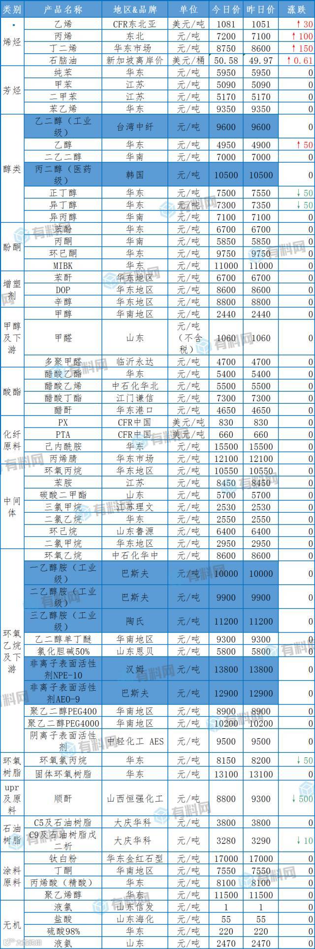 【化工报价】8月4日主要化工产品涨跌定价