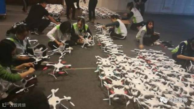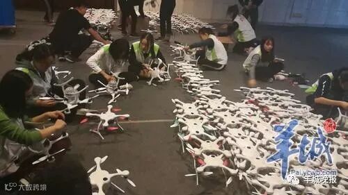 在正式的演出中,志愿者要负责在节目开始之前给无人机装桨、装电池后,从仓库搬运到200米外的起飞场地,如看到闪烁红灯的无人机,代表这架无人机与控制程序没有对接上,就要由志愿者快速进行替换。