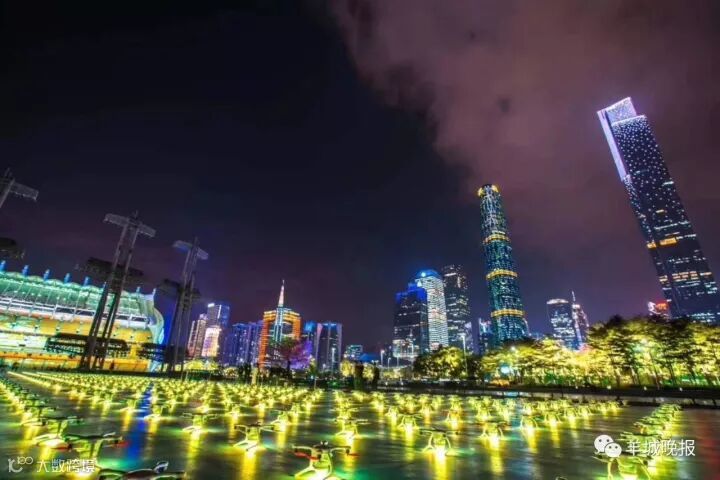 7日晚,在广州塔举行的2017广州《财富》全球论坛招待晚宴上,千余台无人机在海心沙放飞,引起现场无数嘉宾的惊叹。