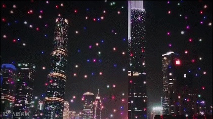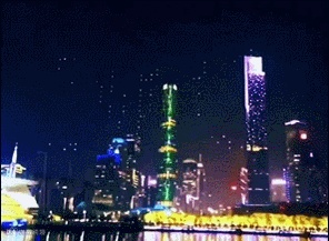在远方广州塔“小蛮腰”的背景下,无人机编队不断变换图案,从船到广州市花木棉花再到安卓机器人动图,其后依次展现“开放”、“创新”、“I♥GZ广州”这三组文字,紧接着,无人机编队演示出无人机的图案,并最终以中国地图作为表演的最终图案。