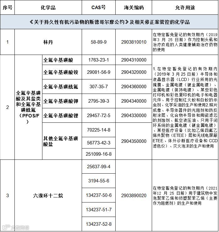 (一)进口《关于持久性有机污染物的斯德哥尔摩公约》及相关修正案管控的化学品