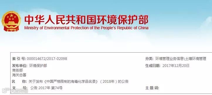 关于发布《中国严格限制的有毒化学品名录》(2018年)的公告
