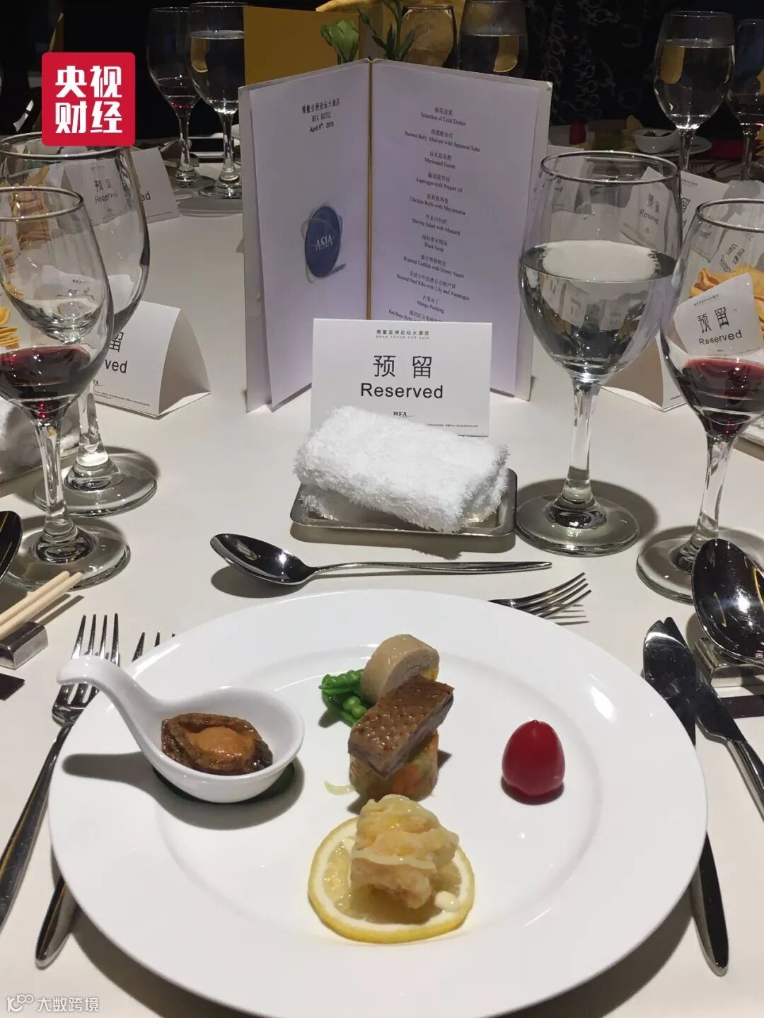 而晚宴菜单则有:锦花前菜、清酒鲍鱼仔、卤水温泉鹅、椒油莴笋塔、蛋黄酱鸡卷、芥末沙拉虾、雨林参水鸭、蜜汁烤银鳕鱼、东坡小牛肋搭百合鲜芦笋、芒果布丁、椰奶红豆卷拼热带鲜果。