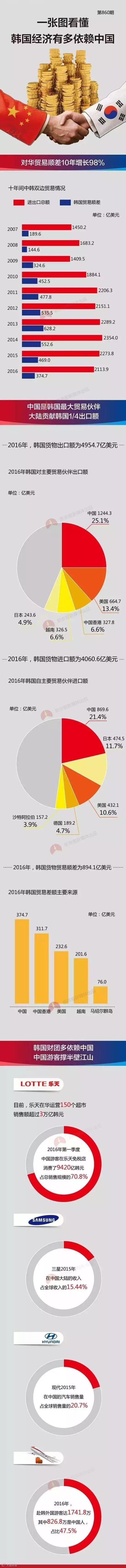 目前韩国出口约占国内生产总值的50%,美国与中国则占韩出口近40%。但由于近期萨德事件,韩国已经失去了中国市场。与此同时,美国扬言要重谈韩美自贸协定,如果韩美自贸协定真的出现问题,韩国经济将陷入孤立无援的地步。
