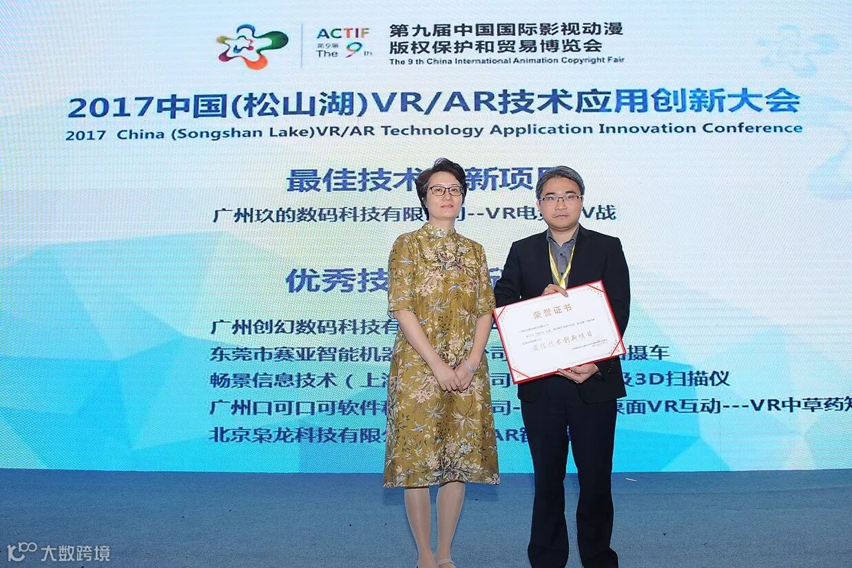△曾莉副主任为玖的VR企业代表颁发“最佳技术创新项目”