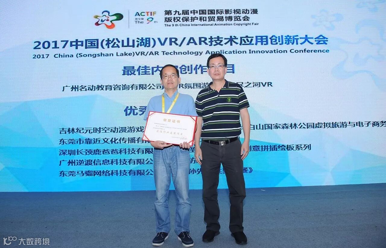 活动自9月发布以来,反响热烈,得到国内VR/AR企业、协会机构、开发团队、高等院校等大力支持,以及黑匣、VR陀螺、36氪等20余家行业媒体广泛报道和关注。截至报名结束,共计吸引了来自北京、深圳、上海、广州、成都、吉林、哈尔滨、东莞等全国各地参评项目106个。经过组委会初步评审、终审,最终确定19个获评项目,并于第九届漫博会“2017 中国(松山湖)VR/AR技术应用创新大会”上正式公布。现场邀请东莞市政府办公室调研员黄福泉,东莞市松山湖(生态园)党工委委员、管委会副主任曾莉,东莞虚拟现实产业联盟理事长林建强等嘉宾为获评项目企业代表颁发了荣誉证书。