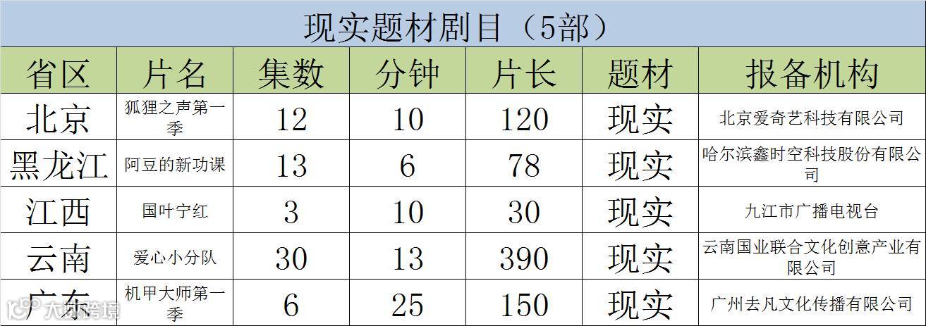 现实题材5部、768分钟,占备案公示总数的20.8%、11.6%。