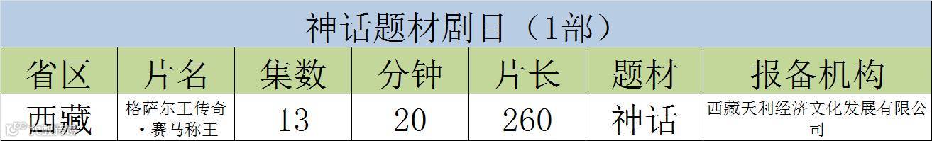 神话题材1部、260分钟,占备案公示总数的4.2%、3.9%。