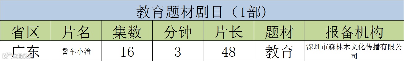 教育题材1部、48分钟,占备案公示总数的4.2%、0.7%。