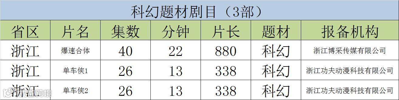 科幻题材3部、1556分钟,占备案公示总数的12.5%、23.4%。