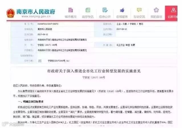 除了山东之外,8月17日,南京市政府也公布《市政府关于深入推进全市化工行业转型发展的实施意见》,明确:今后一律不批新的化工园区,一律不批化工园区外新扩建化工生产项目,一律不批化工园区内环境基础设施不完善或长期不能稳定运行企业的新改扩建化工项目。