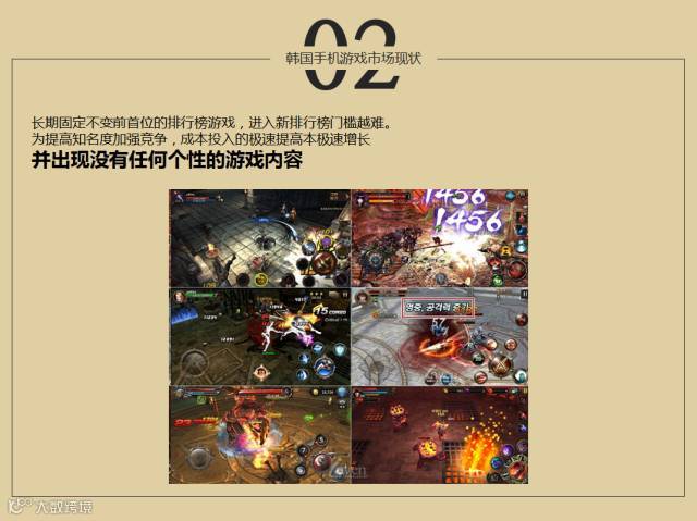 第三韩国游戏界也有比较大的问题,目前出现的一些游戏,没有特别个性化的游戏出现,判断游戏界面的时候,不知道是什么类型的游戏,独特内容分不出来,都是大同小异,光靠图片美术编辑不能代表游戏的差别性。