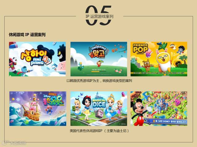 RPG的游戏和mid core合作的案例也不少,另外有休闲类的游戏也比较受市场欢迎,还有美国迪斯尼,以合作的方式推广,在韩国也是比较常见的案例,但这种合作模式涉及到很多因素,因为IP太著名了,所以游戏开发的时候,因素也非常多,开发的过程中也有一些问题。下面的这一些游戏也是韩国比较著名的游戏,也是合作的比较早期的项目,也在市场上比较受欢迎,相对有持续性的更新,在韩国市场上市。
