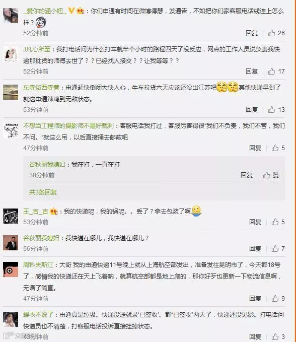 不过从网友的评论来看,大家对于申通的回应并不买账,而是继续曝光申通的问题,包括:快递速度慢、快递丢失、客服态度差、快递被代签等。