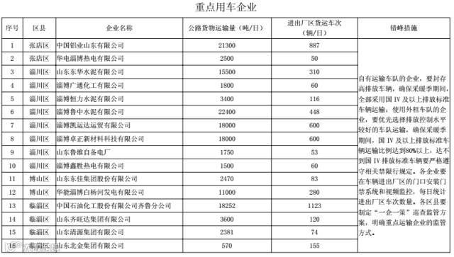 市交通运输部门:配合环保部门做好重点企业实施错峰运输工作。按照《淄博市2017-2018年秋冬季大气污染综合治理攻坚行动巡查工作方案》分工,督导临淄区政府落实错峰生产停产、限产措施。
