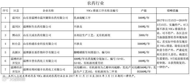 医药行业、农药行业:除获民生任务批准的和不涉及VOCs排放的,其他企业停产4个月(2017年11月15日至2018年3月15日)!