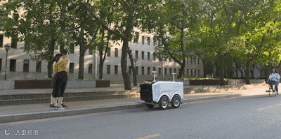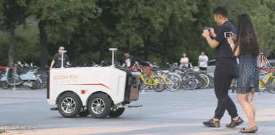 原来,这是送货无人车。6月18日,京东无人配送车在中国人民大学顺利完成了首单配送任务,这意味着:无人配送机器人正式投入运营。