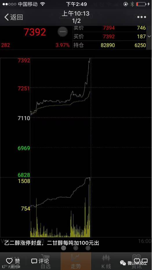 自7月份以来,乙二醇受到交割期的影响,涨势略显迅猛,十天涨幅超5%!8月1日中石油分公司抚顺石化乙二醇现货出厂价7320元/吨!