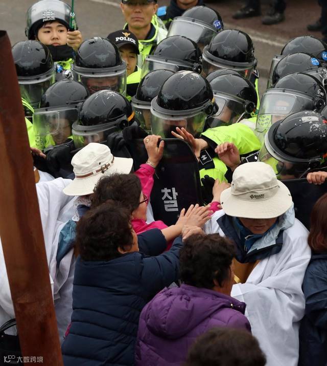在韩军方拖车将萨德部件运送至部署地点时,警方与村民发生了剧烈冲突。