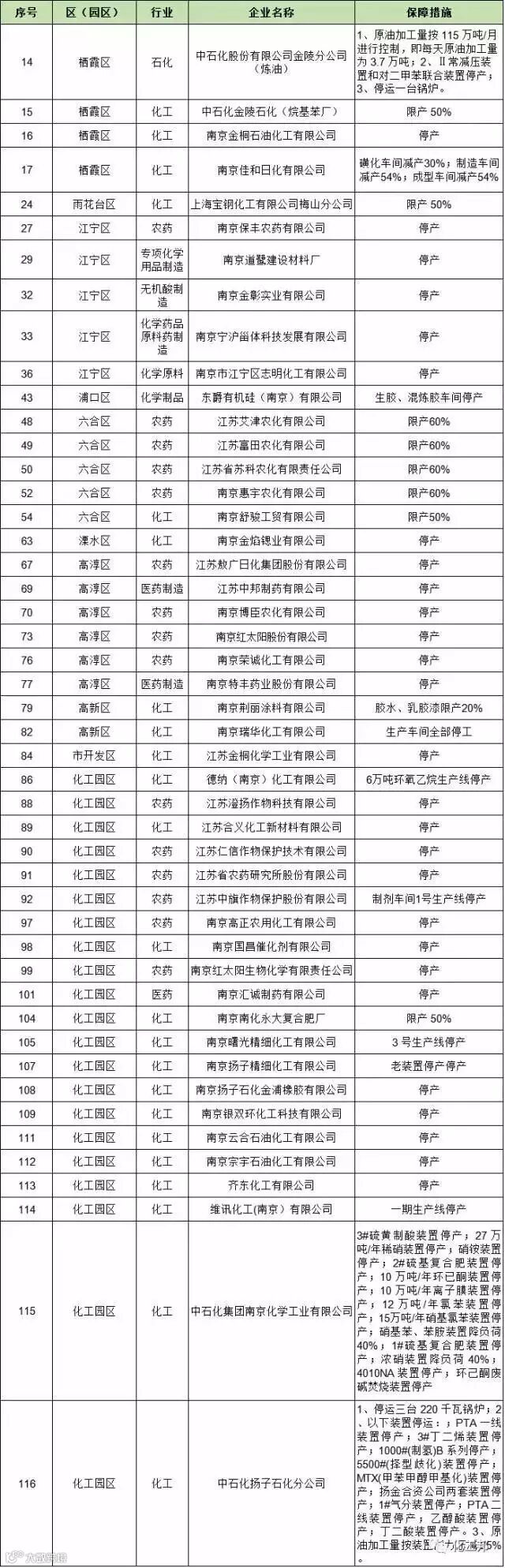 近日南京多家化工企业强制性限产、停产,中石化也在其中,整理名单如下: