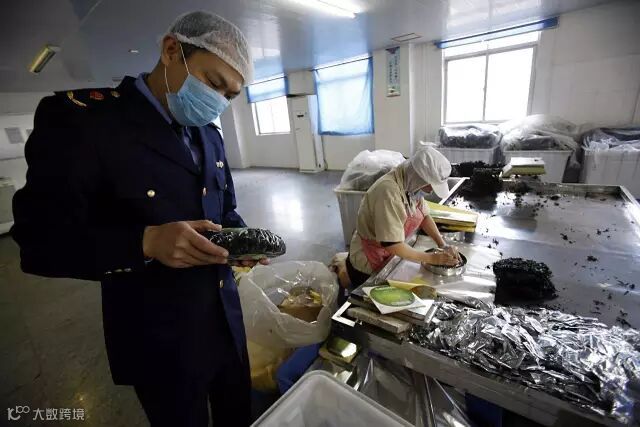 ▲晋江市市场监督管理局工作人员在紫菜包装车间进行现场检查