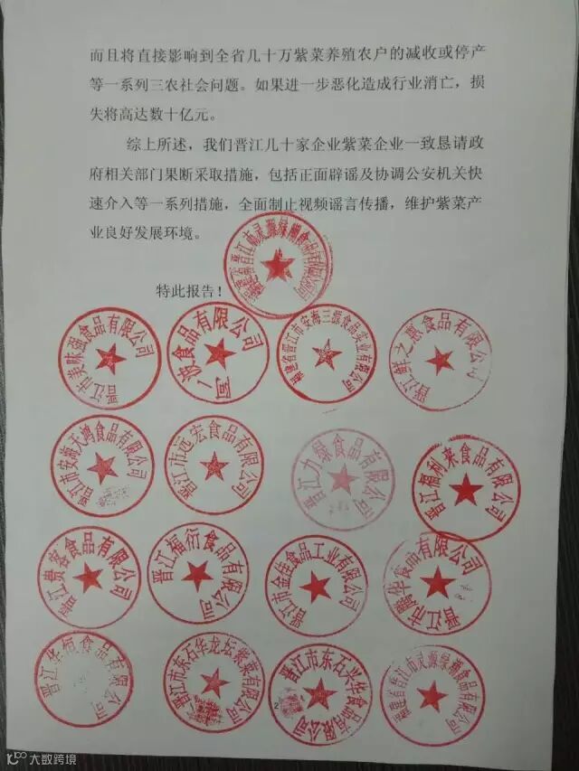 据悉,谣言视频导致阿一波等品牌厂家在多家连锁超市产品全部下架,损失巨大,经销商恐慌不敢订货,造成紫菜产品滞销,已有多家经销商致电要求退货。据保守估计,该事件对晋江、福建紫菜产业将造成近亿元的损失,业内担心再不采取有效措施止血,其负面影响将持续扩大,甚至波及福建沿海数十万渔民的生计。