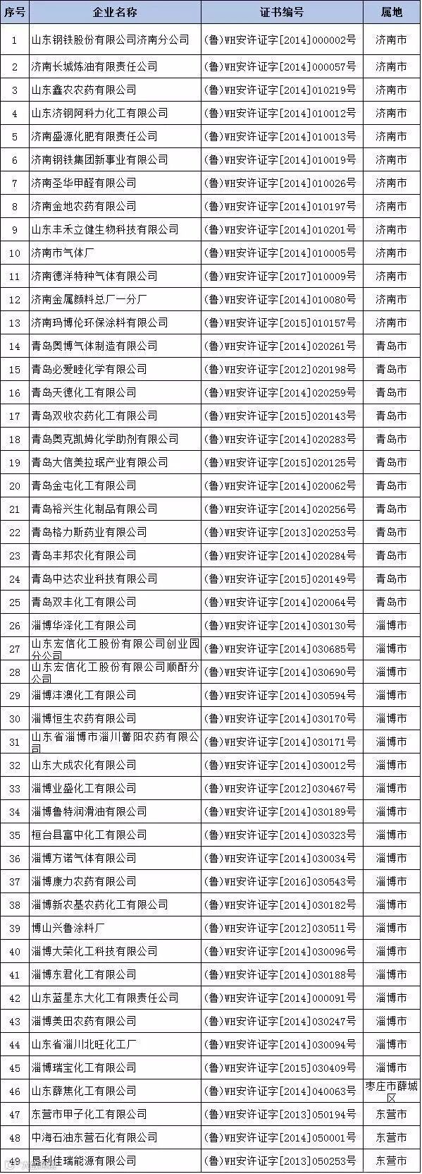 近日,山东省安全生产监督管理局发布公告称,根据《安全生产许可证条例》(国务院令第397号)、《危险化学品生产企业安全生产许可证实施办法》(安监总局令第41号)的规定,2017年上半年共依法注销了169家危险化学品生产企业安全生产许可证。
