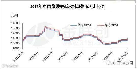 7月份环氧乙烷以普涨200元/吨收官,然其供应紧张局面仍未有明显缓解,聚羧酸减水剂单体市场原料连续短缺,多数工厂订单积压。至31日收盘,聚羧酸减水剂单体市场整体上涨200-300元/吨不等,跟涨势头不减。