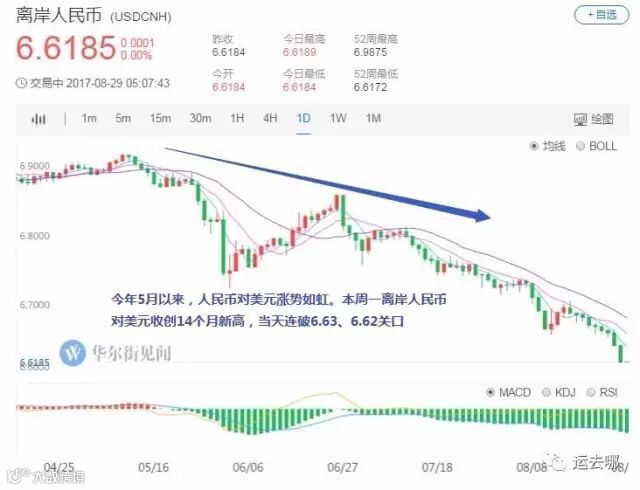 昨夜,在岸人民币兑美元接连升破6.63、6.62、6.61关口,一度创2016年8月以来新高,收报6.6050元,较上周五夜盘收涨434点!