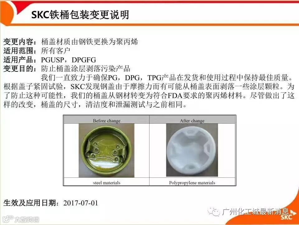 韩国SKC铁桶包装变更说明