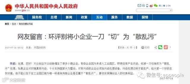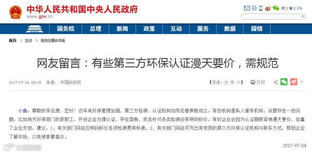 太敢说了!有人在政府网留言,跟李克强总理反映环保整改的“潜规则”
