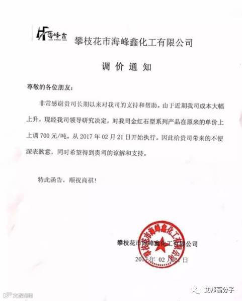 这几天又不少的企业发出了涨价通知函,以下是这两天在朋友圈看到的,仅供大家了解以及熟知,做个心理准备。