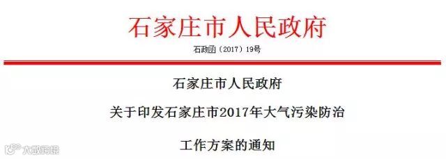为进一步改善石家庄市大气环境质量,持续加大大气污染防治工作力度,近日,《石家庄市2017年大气污染防治工作方案》正式发布。