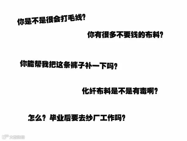 “幼师=带孩子的、计算机=修电脑的、电商=开网店的、市场营销=搞传销的、平面设计=搞装修的、服装设计=裁缝室出来的、动漫游戏=成天来学校打游戏的、会计=数钱打算盘的、食品质量与安全=给猪盖章的……”