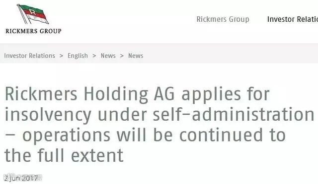 据德国航运公司瑞克麦斯集团(Rickmers Group)官网消息:由于与其主要的债权银行德国北方银行(HSH Nordbank)拒绝了最新的债务重组计划,并且拒绝就重组方案进行进一步的协商。德国瑞克麦斯集团(Rickmers Group)表示其很可能会申请破产。