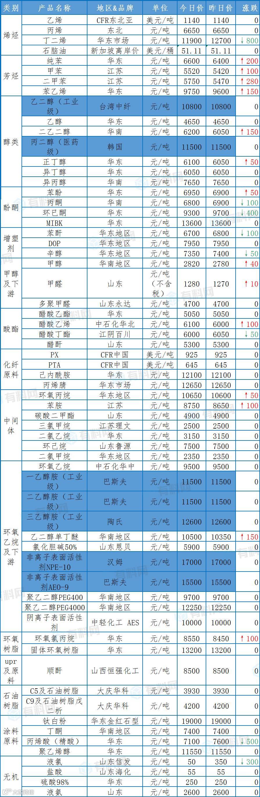 【大概参考】4月6日主要化工产品涨跌定价参考