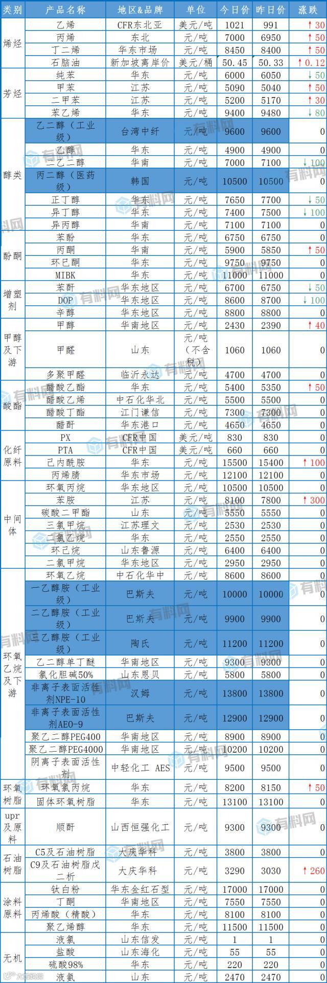【化工报价】8月2日主要化工产品涨跌定价