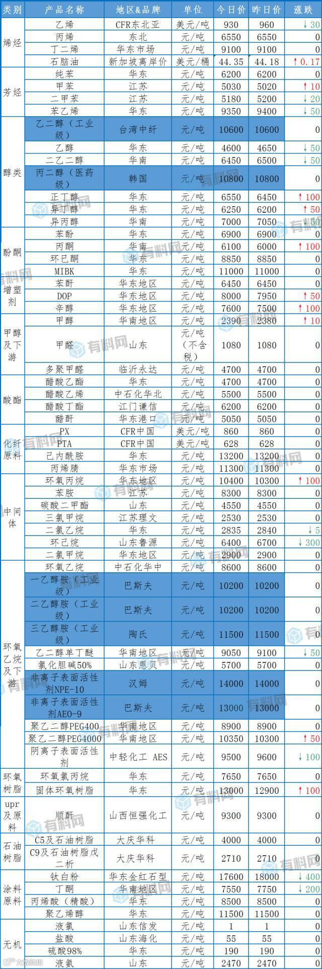 【化工报价】7月4日主要化工产品涨跌定价