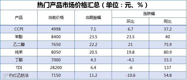 化工产品价格预期增加