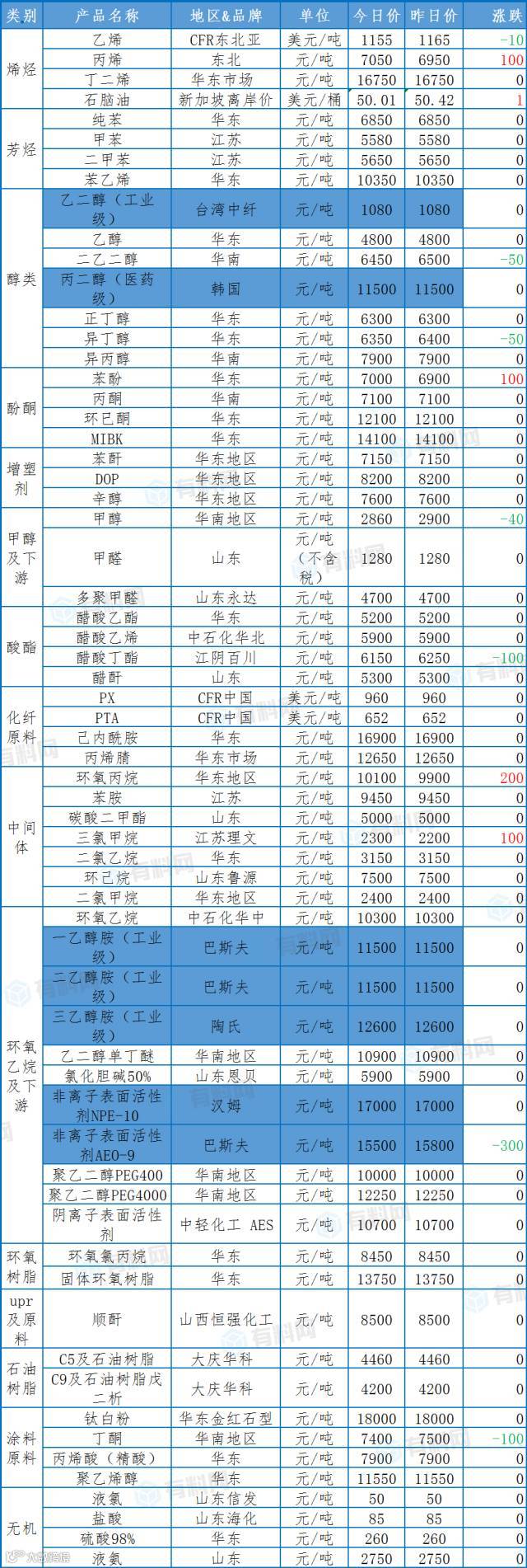 【大概参考】3月20日主要化工产品涨跌定价参考