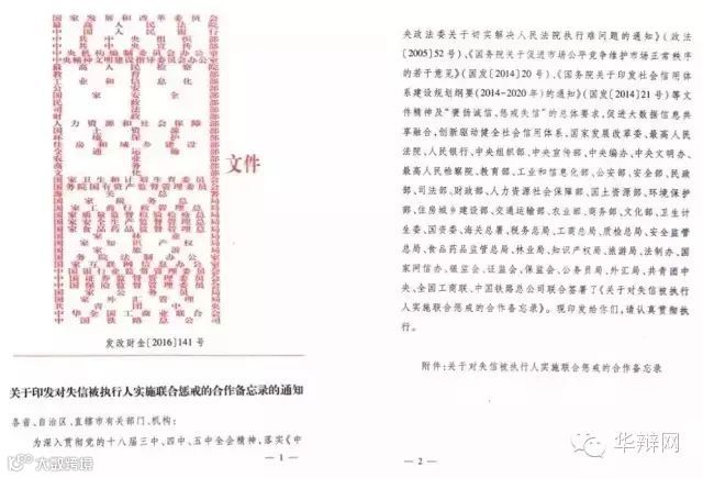 《关于印发对失信被执行人实施联合惩戒的合作备忘录的通知》(下称《备忘录》)