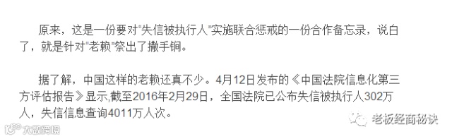 从2015年12月起,凡因有偿还能力但拒不偿还全部或部分到期债务,被全国各级人民法院列入失信被执行人名单的自然人(即“老赖”),将受到信用惩戒,不得在全国范围内担任任何公司的法定代表人、董事、监事和高级管理人员。