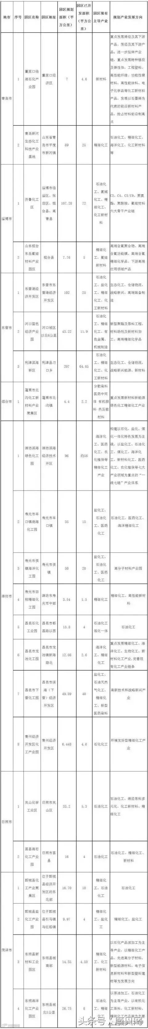 日前,山东省化工产业转型升级工作办公室公布了全省首批确认保留类化工园区名单。共有22个。其中青岛2个,淄博2个,东营3个,潍坊8个,烟台1个,日照2个,菏泽4个。