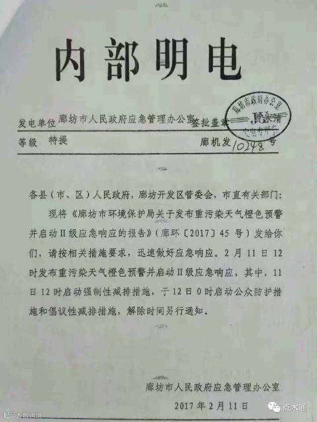 据点木通新闻办了解:环保部督察组一行12人已到廊坊,为期一个月到3月15日,将重点检查企业的环保手续,重污染天气应急响应落实情况,污染物排放是否达标等环保问题。凡是没有排污许可证的企业全部关停,凡是手续齐全但未通过环保、安监 、消防、城建等相关部门验收合格的企业不得复产。请各企业高度重视,严格按上级要求执行,顶风生产的,县政府将组织相关部门对企业严厉查处!