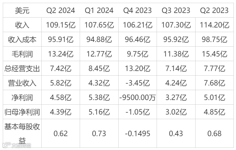 2024财年前六月,陶氏累计收入216.80亿美元,去年同期累计收入为232.71亿美元,同比减少6.84%。累计净利润9.96亿美元,去年同期累计净利润为4.28亿美元,同比增长132.71%。