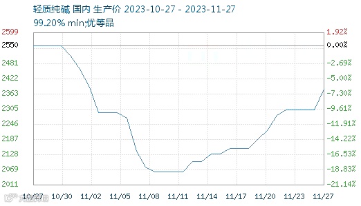 ▶▶轻质纯碱:国内纯碱坚挺运行,市场主流价格2300-2600元/吨,较月初上涨500元/吨左右。纯碱行业负荷下降,开工率在87%左右,货源供应量减少,下游需求变化不大,适量补库为主。供需博弈,综合预计纯碱或坚挺运行为主,具体看下游市场需求。