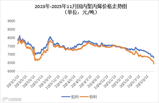 本周聚丙烯市场弱势运行,价格大幅走跌。粉料全国均价为6826元/吨,较上周均价下跌53元/吨,跌幅为0.77%。粒料全国均价为6492元/吨,较上周均价下跌120元/吨,跌幅为1.81%。